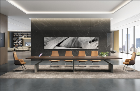 Rectangular Meeting Table with Wood Veneer FinishIncluding Electric Rail in the Middle with 3 Power UnitMedium Leg as Cable Riser