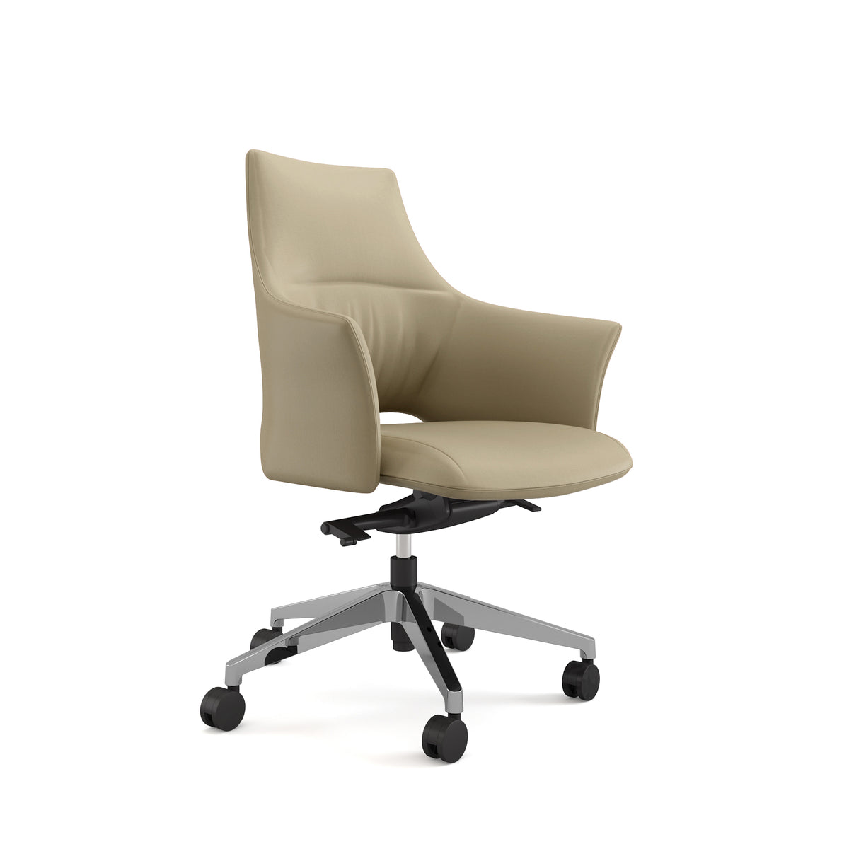 Medium Back Executive Chair with Half Leather Finish Donati Knee Tilting Mechanism with 3-Position Locking Korea SHS Class-3 Gas Lift Aluminum Alloy 5-Star Base with Reinforced PU Mute Castors