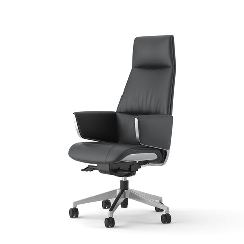 High Back Executive Chair with Half Leather FinishDonati Synchronized Tilting Mechanism with 4-Position LockingClass-3 Gas LiftAluminum Alloy 5-Star Base with Reinforced PU Mute Casters