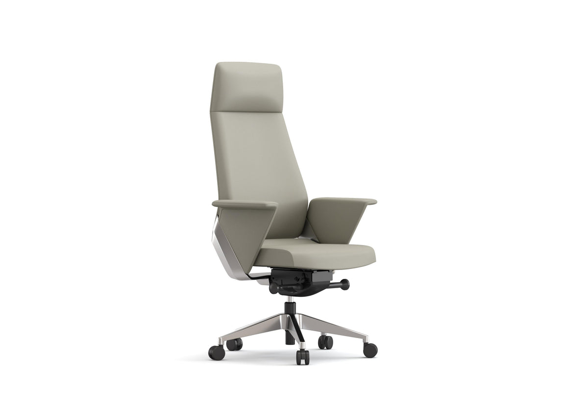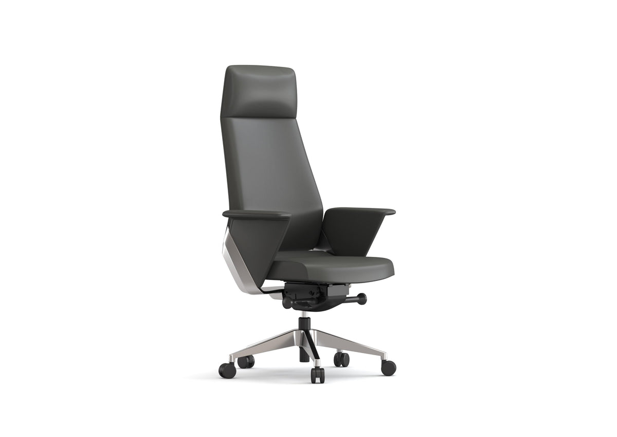 High Back Executive Chair with Half Leather Finish Donati Synchronized Tilting Mechanism with 5-Position Locking and Seat Sliding Function Class-3 Gas Lift Aluminum Alloy 5-Star Base with Reinforced PU Mute Castors