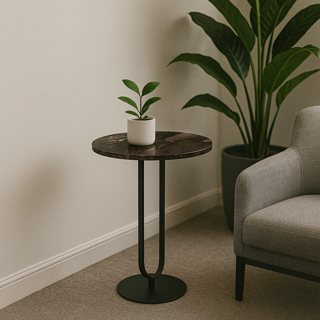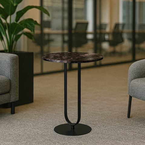 Elegant and minimal, this Coffee Table brings together luxury materials and refined design. The striking marble top rests on a slim black metal base, creating a bold contrast that feels both modern and timeless. Compact yet stylish, it fits perfectly into lounges, reception areas, and contemporary living spaces.
