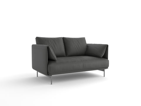 2-Seater Sofa with PU Leather Finish & Half LeatherSolid Wood & Particle Board Inner FrameSteel Legs