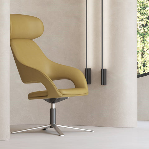 Executive Armchair with PU Leather Finish Aluminum Alloy 4-Star Base