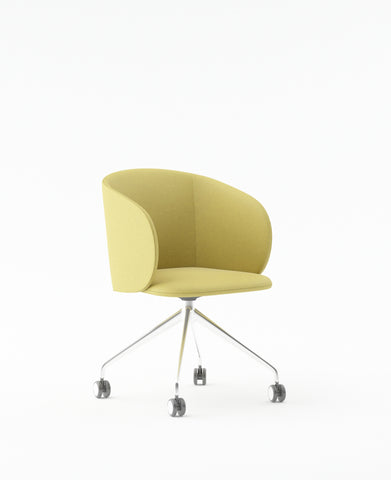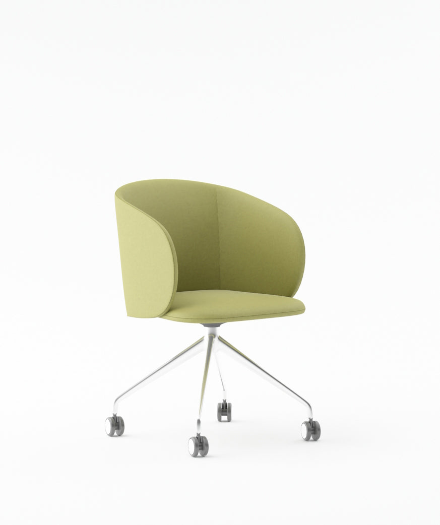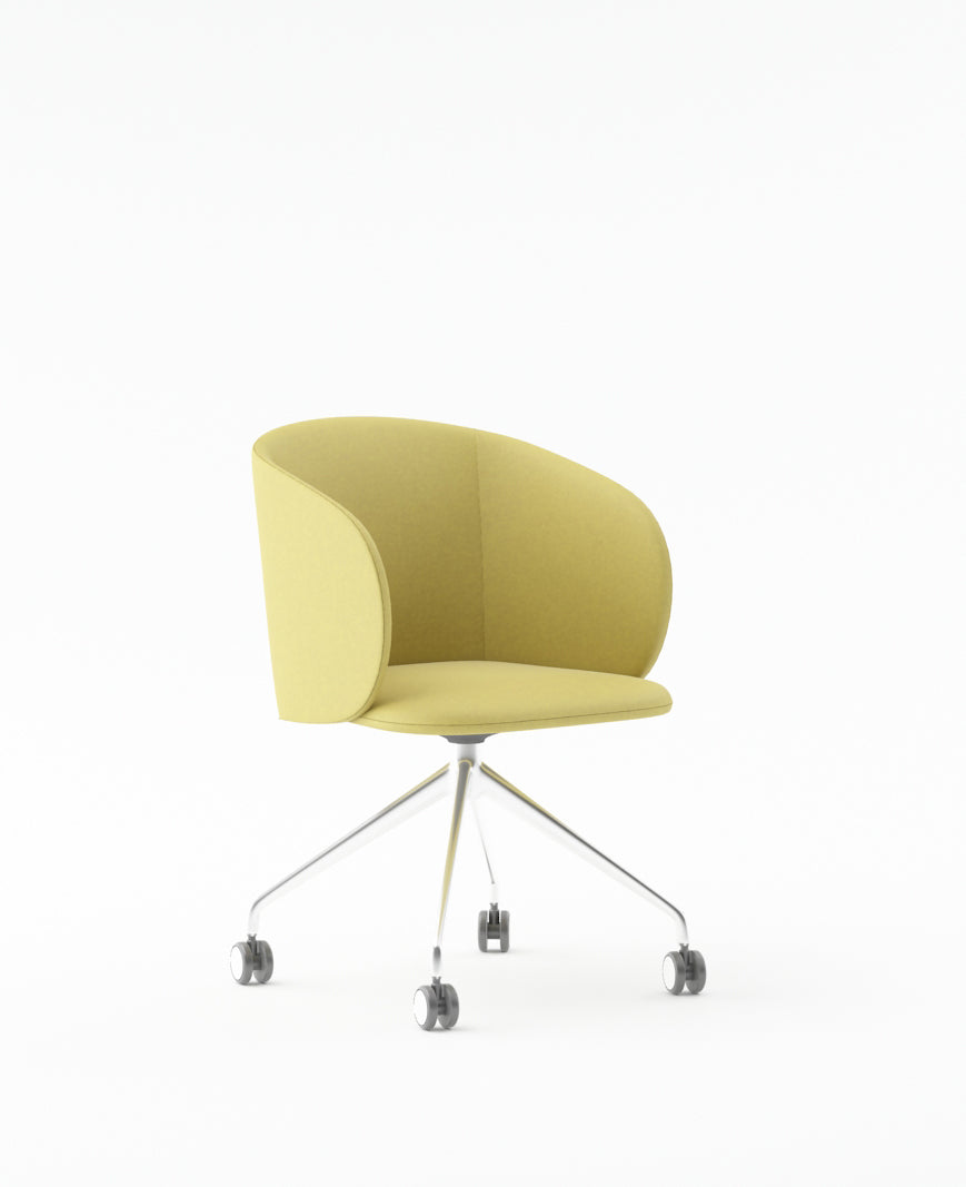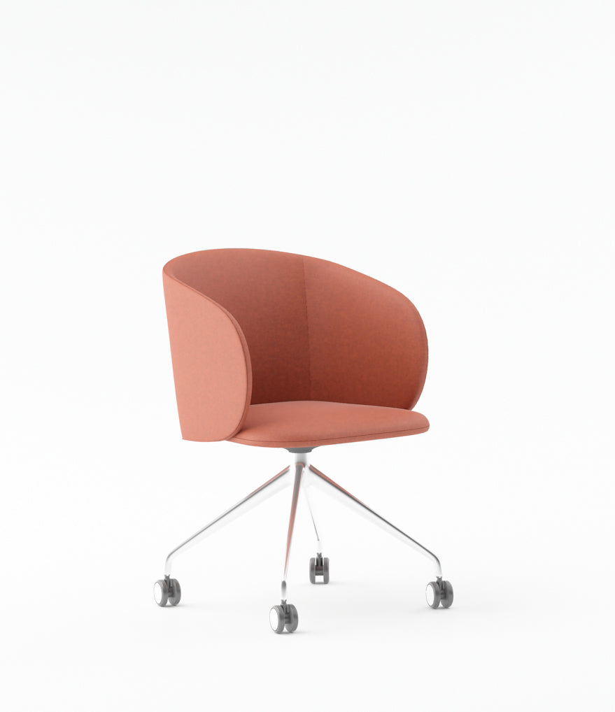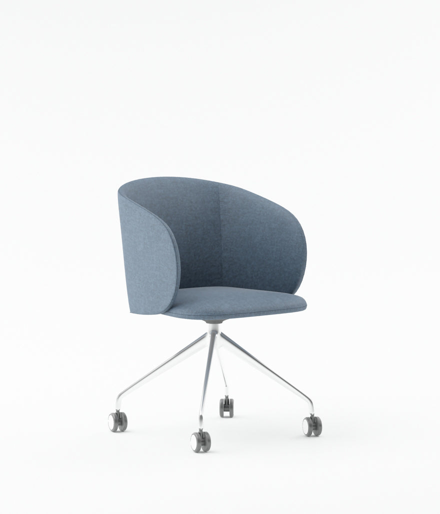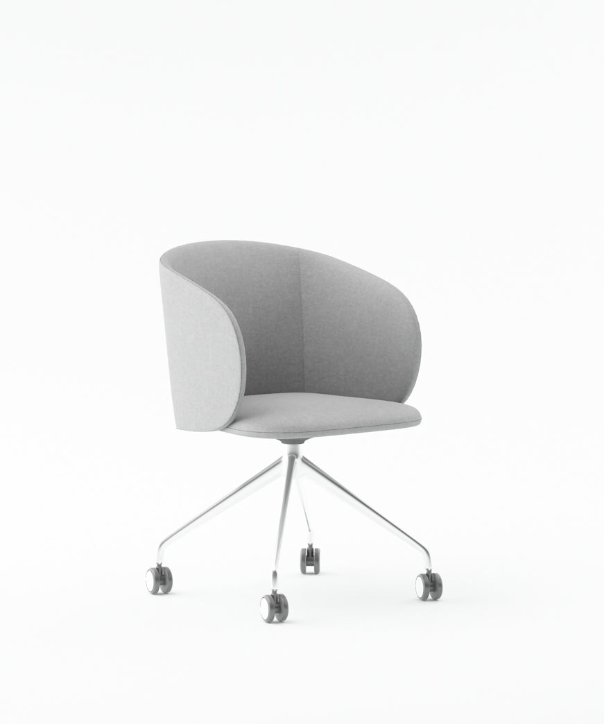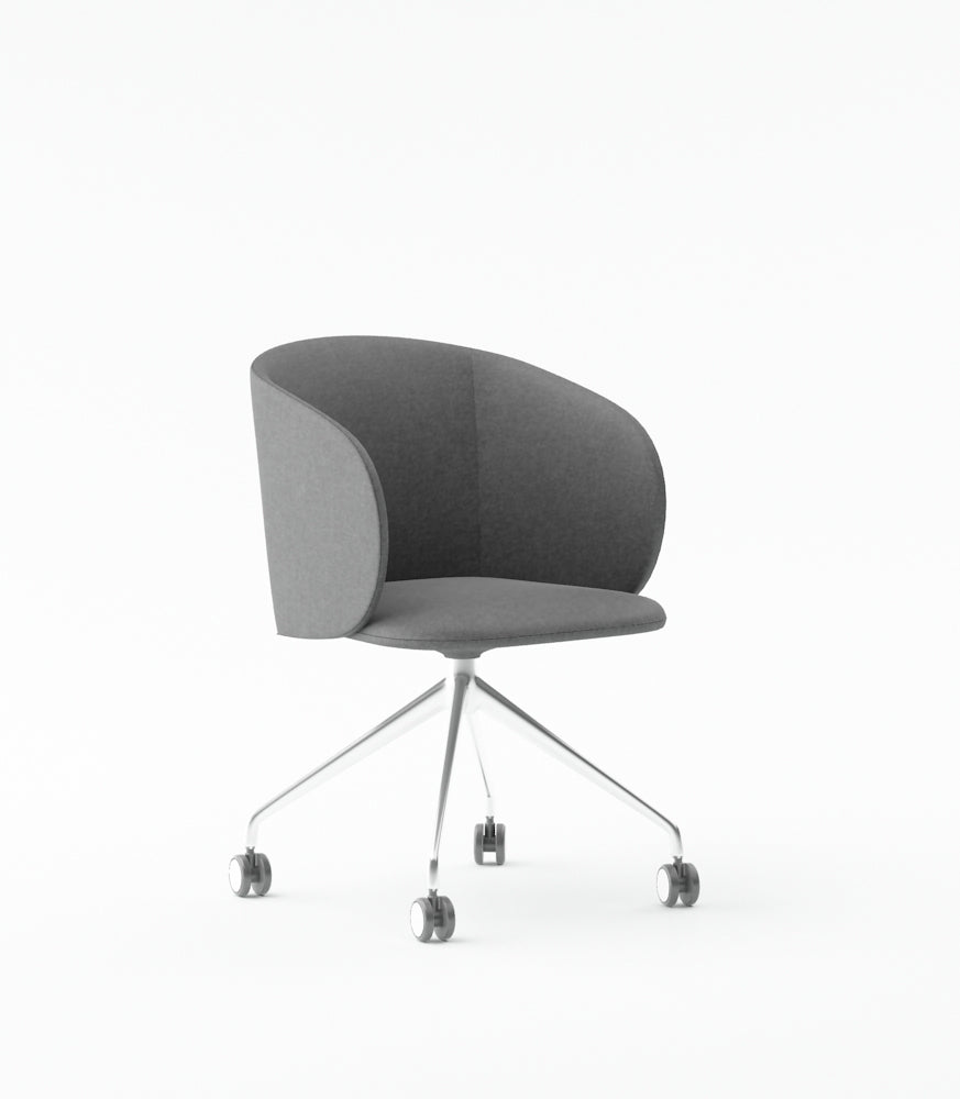 Armchair with PU Leather Finish & FabricSolid Wood & Particle Board Inner FrameChrome Base with Castors
