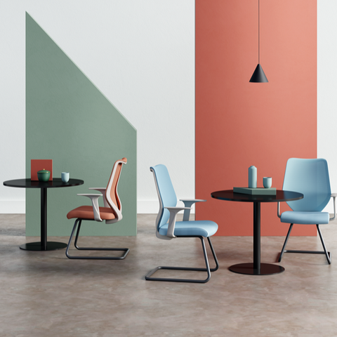 Medium Back Chair with Mesh Back & Seat Black PA Back Frame Fixed PP Armrest Black Sled Base with Powder Coating Finish