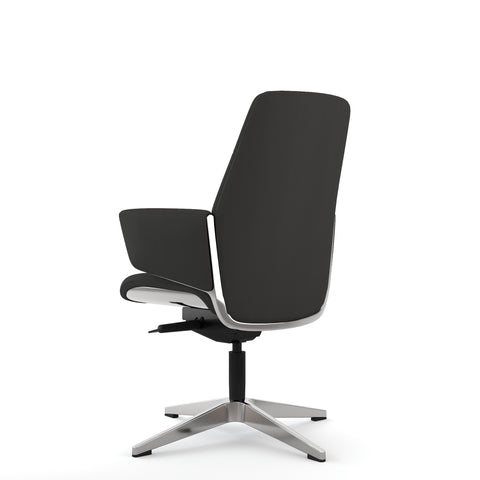 Medium Back Executive Visitor Chair with Half Leather Finish Donati Synchronized Tilting Mechanism with 4-Position Locking Class-3 Gas Lift Aluminum Alloy 4-Star Base