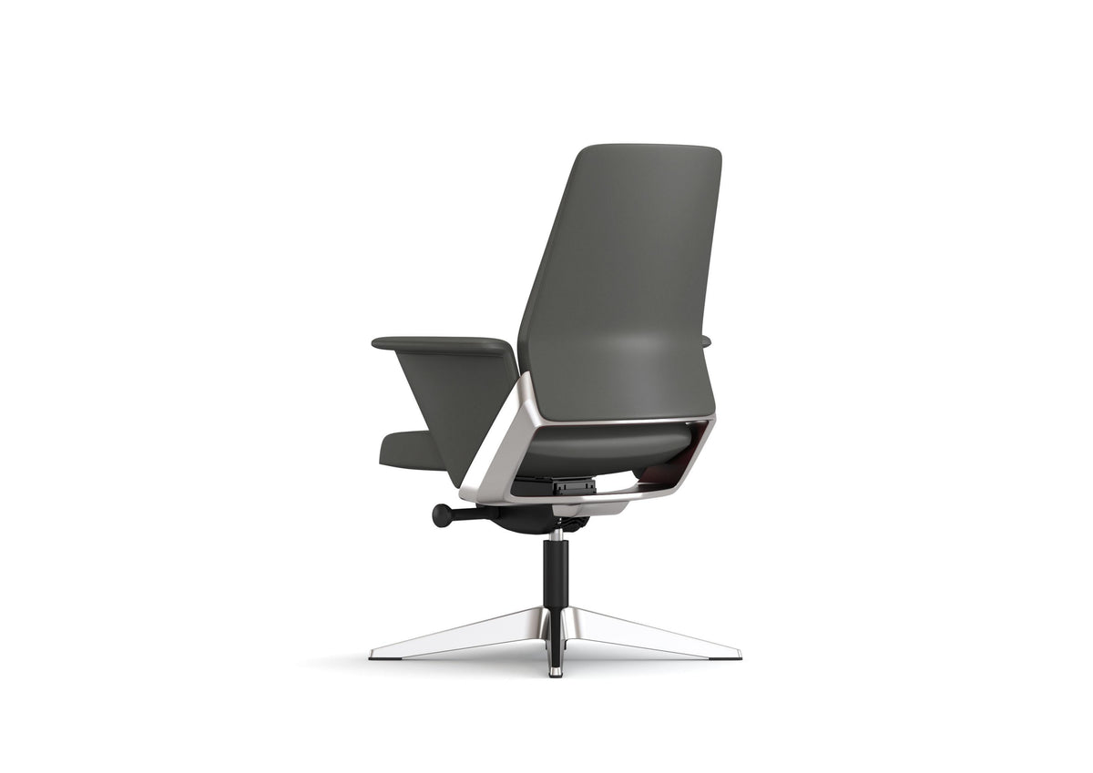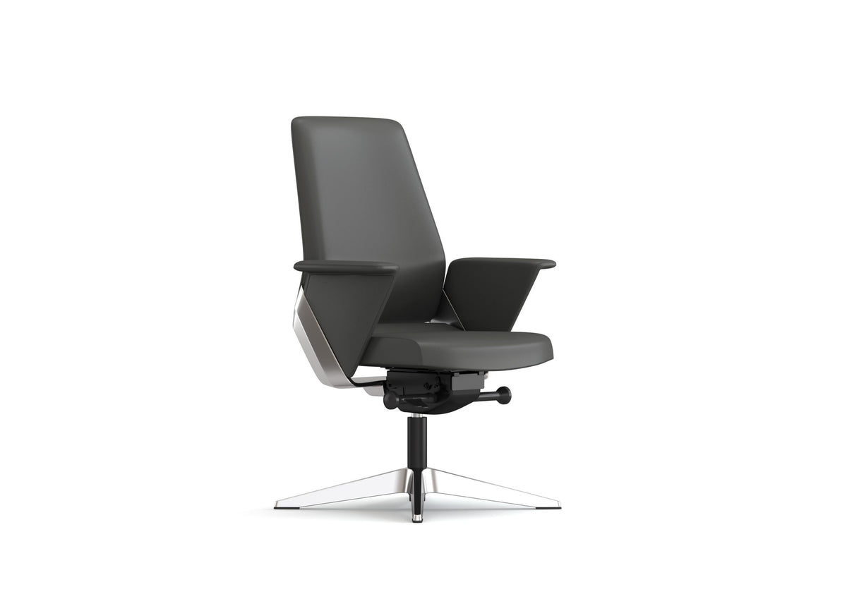 Medium Back Executive Visitor Chair with Half Leather Finish Donati Synchronized Tilting Mechanism with 5-Position Locking and Seat Sliding Function Class-3 Gas Lift Aluminum Alloy Base