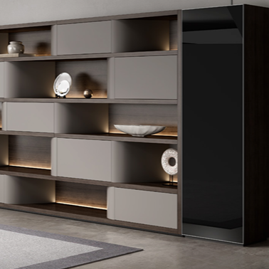 Executive Cabinet with Wood Doors & Shelves Blum Flip Doors, IF Flip Support, DTC Slide Rail, DTC Hinges, Cloth Hanger, 3000K LED Light