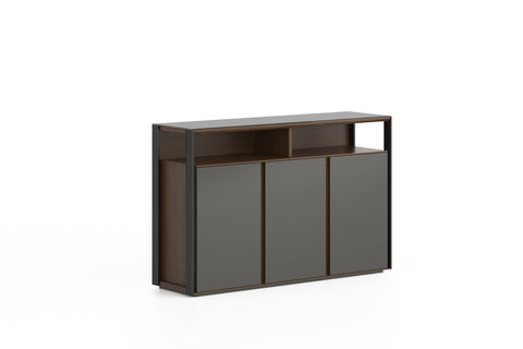 High File Cabinet with Filp Doors at the Top Hittech 3-Section Slide Rail Grey Glass Shelves