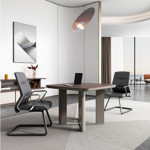Sqaure Meeting Table with Wood Veneer Tabletop and Steel Base
